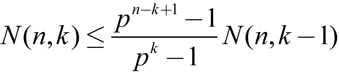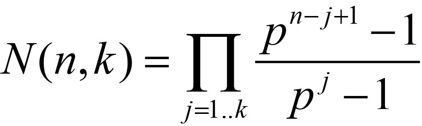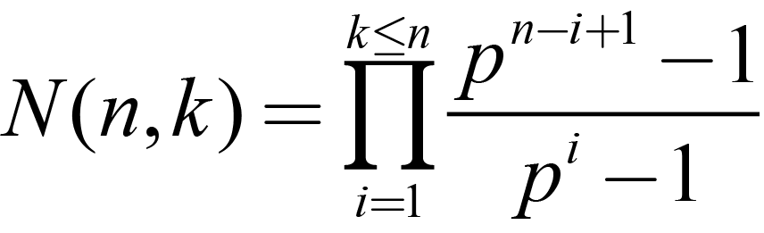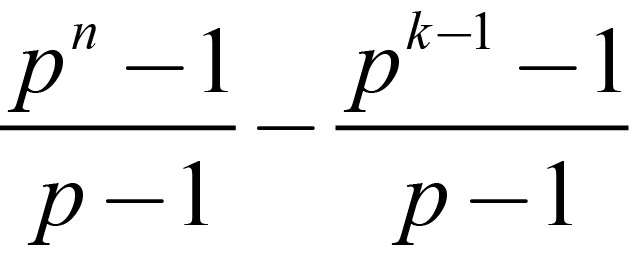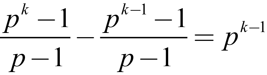 Now, this is the number of pk subgroups generated by each of the pk-1 subgroups. Yet this is too many as each extension to a pk group is made by more than one pk-1 group.