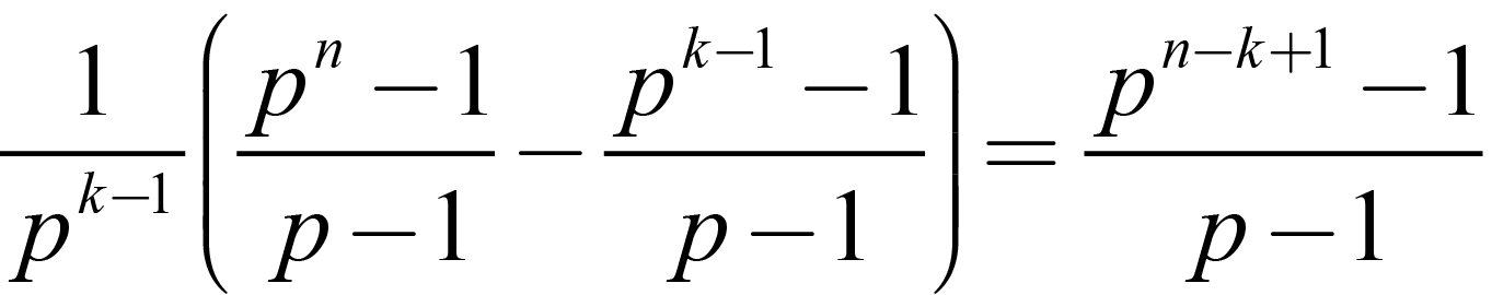 Yet we do not rely on each pk group in N(n,k) being uniquely generated by one pk-1 group of N(n, k-1). Is it reasonable then to reduce the number by induction down from k=n-1 to k=1? I state that yes, it is and this is true by induction, as we are not finding the number of unique groups generated by each pk-1 group H of the N(n, k-1) but are calculating the number of unique subgroups in the extension of the base p-group as a whole. The multiple is properly a “commensurate” or “ration” and is not a formula for the number of “unique” pk groups so generated from each pk-1 group.