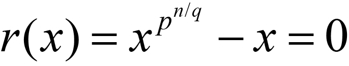 It is not hard to reconcile the irreducible irr(x) with which the field is constructed with the formula (1.1) above. This is actually best done with inspecting Rabin's irreducibility test; which states that every maximal proper subfield of GF(p,n) has its multiplicative subgroup formed of the roots of some equation r(x) of the form