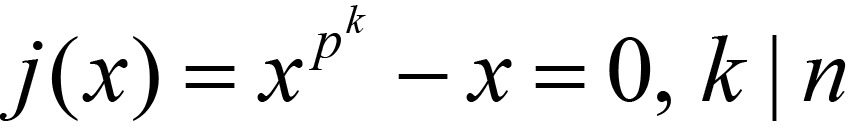 I note that equation (1.3) or j(x) divides f(x) when k | n. Considering the field J of pk elements, J is a subfield of K over F, K, the field of order pn elements. Mapping with a canonical morphism X from F[x] to J = F[x]/<g(x)> the kernel is formed by all polynomials divisible by g(x). Yet for every element in J, this satisfies f(x) =0 so the polynomial f(x) is in the kernel of the map X, and therefore g(x) | f(x).